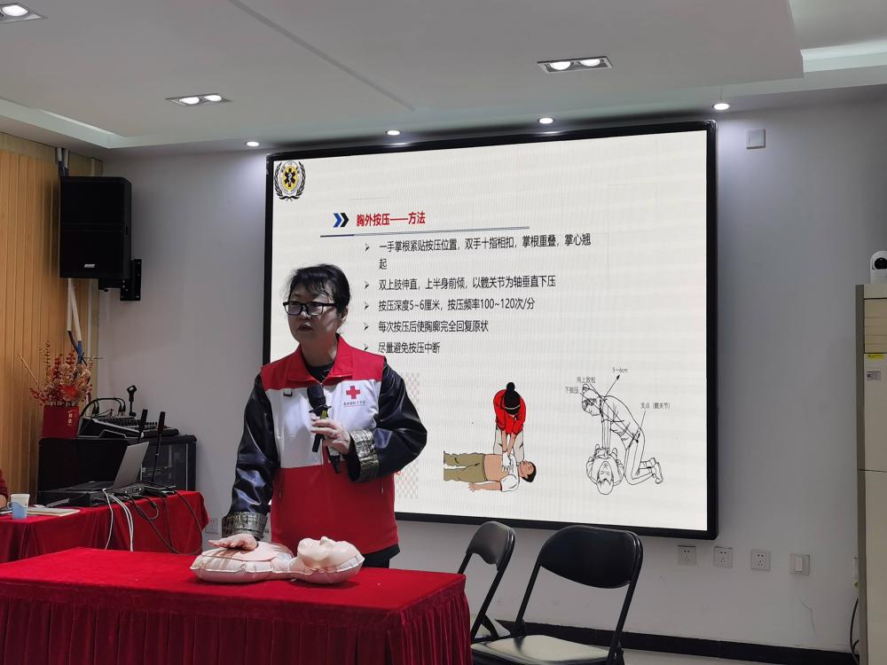 培训设置四大核心模块,将专业知识转化为通俗易懂的科普内容。消防安全科普环节,专家详细讲解火灾隐患排查、灭火器材规范使用及火场逃生技巧,手把手教学灭火器“提拔握压”操作要领,让居民熟练掌握居家消防技能;在自然灾害应急科普中,结合地震避险场景,讲解科学避险原则,指导居民规范做好防护、有序撤离;急救科普聚焦心肺复苏(CPR)与AED使用,拆解关键操作步骤,普及急救黄金时间知识。