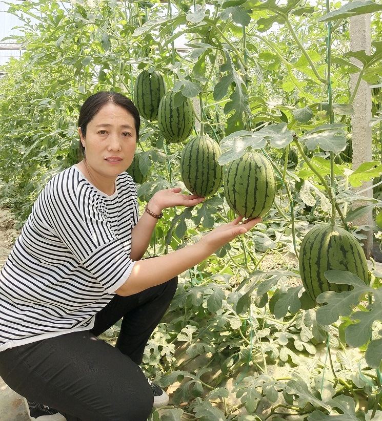 2009年,她成立李素环瓜果蔬菜专业合作社,引进暖棚种植,改良种植方式,还建起育苗大棚,统一育苗,减少化肥、农药使用;2015年,她引入智能化控制系统,建起智能化大棚,实施节水灌溉……近期,李素环又引入新品种,试种成功礼品西瓜,可吊蔓种植,亩均增收50%。