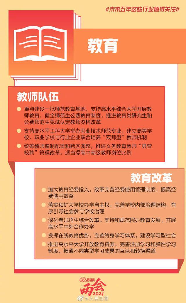 3月5日,“十四五”规划和2035年远景目标纲要草案提请十三届全国人大四次会议审查。新一代人工智能、集成电路、教育、养老……未来5年,哪些行业值得关注?规划纲要草案为你指明方向: