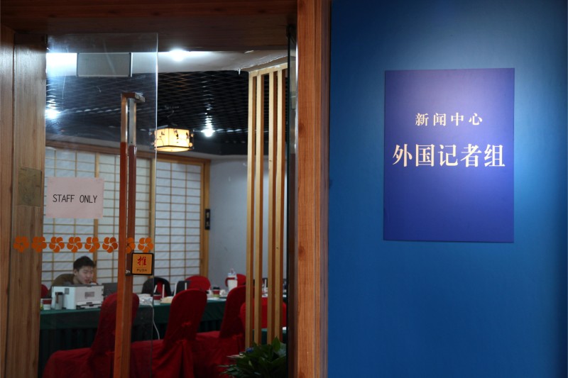 全国两会新闻中心外国记者组服务处。摄影/记者 郑茂典