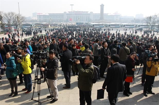• 会场外众多的新闻媒体等候代表走出会场接受采访