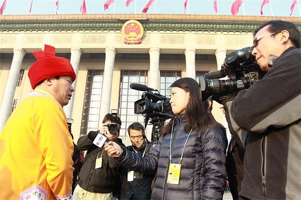 • 少数民族代表在会议开始前接受媒体采访