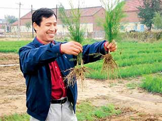 邱德文在辽宁丹东芦苇示范现场查看植株情况