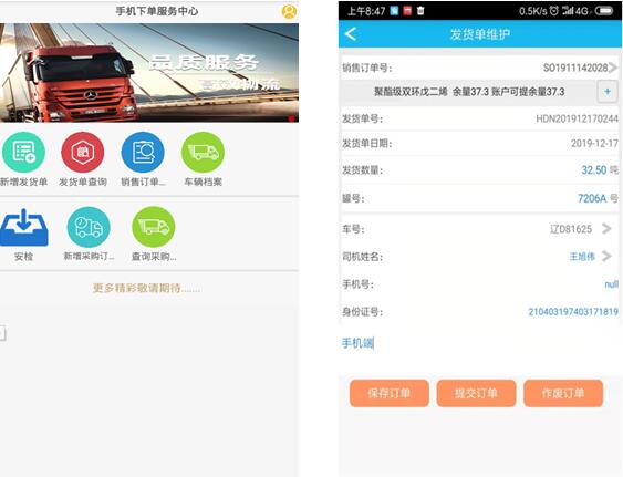 提货客户线上发起提货申请,系统判断客户预付货款是否充裕,车辆及司机资质是否符合要求,一切无误后生成发货单。