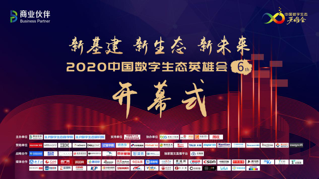 【B.P商业伙伴】携手业界领袖精英,共建数字生态,共迎新基建。2020中国数字生态英雄月,期待和大家系列主题论坛云上见,同时期待在闭幕式峰会暨英雄会盛典线下相聚!