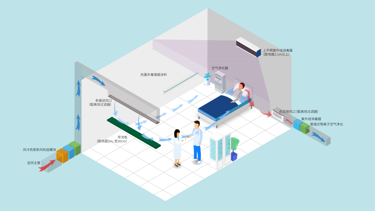 “室内空气消杀—新风系统保障—负压出风灭活”全流程的一体化技术与成套装备原理