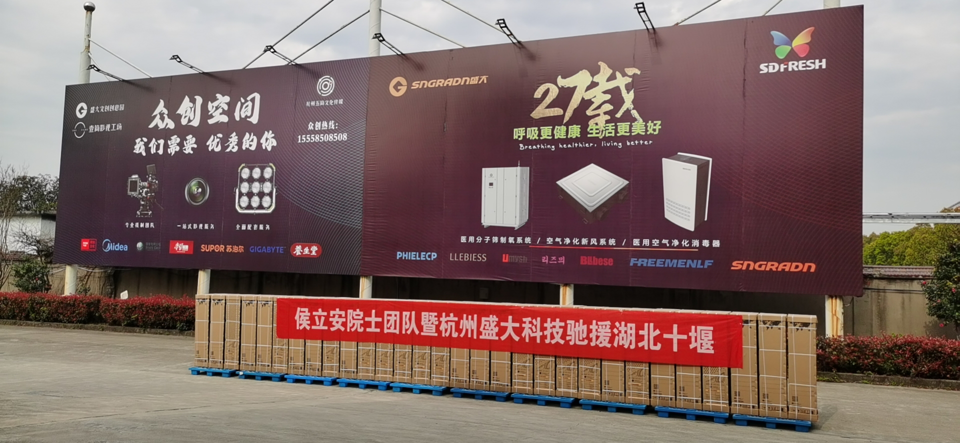 科技战疫,共克时艰。侯立安早已是抗疫“逆行者”队伍中的一员。除了病区空气净化装备,侯立安团队还联合万喜人家环保科技有限公司、杭州盛大高科技机电有限公司等科技企业向湖北省十堰市捐赠物资,包括医用口罩、上平照紫外线消毒器、量子点石墨烯灭活试剂、智能新风净化装置、智能负压净化装置以及美螺装饰改造材料等,重量达5吨,总价值106万元。