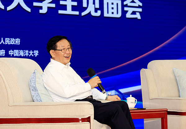 8月15日上午,全国政协副主席、中国科协主席万钢在中国海洋大学鱼山校区逸夫科技馆,与来自中国海洋大学、山东大学、山东科技大学等学校的50余名青年学子代表进行面对面交流