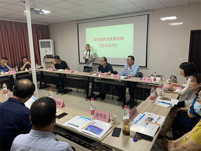 当天上午,河北省医药行业协会(器械部)邀请河北医科大学第二医院、河北省胸科医院、石家庄市第五医院、河北省市场监管局、河北省疾病控制中心、河北省医学科学研究院、石家庄奥祥医药工程有限公司的相关人员,召开“稳态置换流医用诊舱卫生安全评价”研讨会,探讨让感染病区、发热门诊医护人员工作中能脱掉防护服、隔离衣的可能性解决方案。