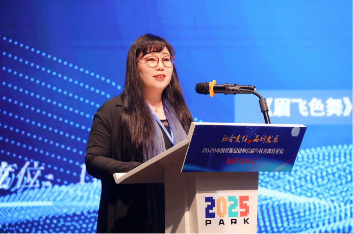 中国化妆品华南中心筹委会副秘书长高丹丹就论坛的主题、议题、会议形式、会议情况、议程细节等发表讲话。2020中国化妆品爱心公益与社会责任论坛将以“社会责任与品牌发展”为主题,开展由政府部门领导、行业专家、化妆品企业、新媒体专家等共同参与的讲演与讨论。