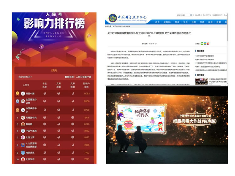 新冠疫情暴发以来,中国科协第一时间启动应急科普响应机制,连续发出5封倡议,组织科技界投身科学防治阻击战。全国3500余个学会融入群防群治网络,3万余名基层“三长”、500余万科普信息员积极行动,开展科普服务和心理咨询,稳定人心,传递科学力量。疫情期间,“科普中国”保持政务榜“榜首”,“科学辟谣”传播量超20亿人次。联合印发《关于进一步加强突发事件应急科普宣教工作的意见》,推动应急科普纳入国务院联防联控机制。
