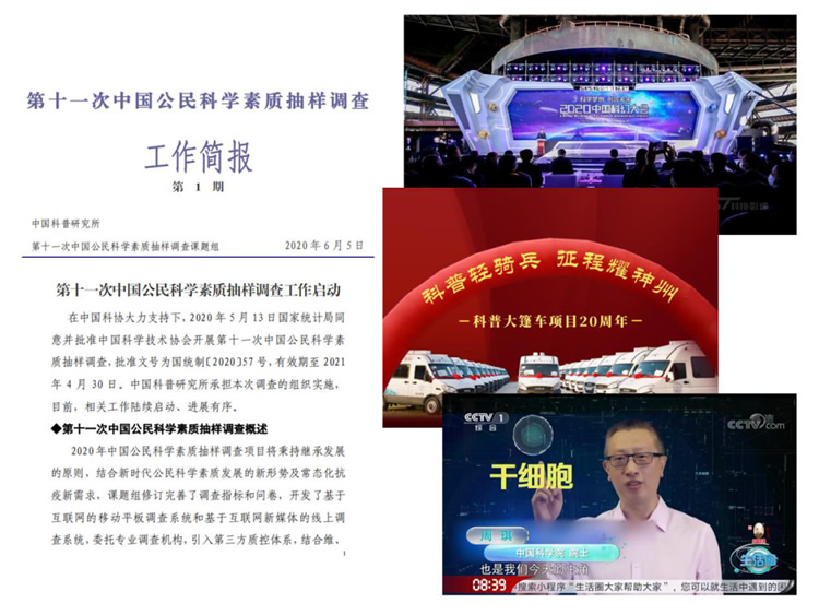 2020年全国科普日开展各类科普活动3.7万项,线下活动参与超2亿人次,线上浏览超10亿次。培育科幻生态,与北京共建科幻基地,举办2020中国科幻大会,与国家电影局联合发布《关于促进科幻电影发展的若干意见》。支持天津、深圳开展全域科普,把科普工作和基层组织建设一体推进。联合央视推出“院士说科技”“一问到底”专题节目,有效回应公众关切、正确引导社会舆论。科普大篷车坚持服务基层20年,打通科普工作“最后一公里”。据第十一次中国公民科学素质抽样调查,我国公民具备科学素质的比例超过10%。