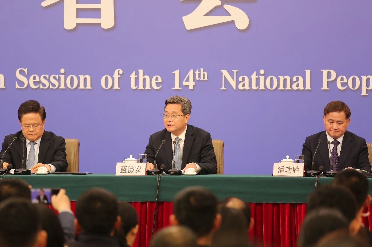 3月6日,十四届全国人大四次会议在北京梅地亚中心新闻发布厅举行记者会。国家发展和改革委员会主任郑栅洁、财政部部长蓝佛安、商务部部长王文涛、中国人民银行行长潘功胜、中国证券监督管理委员会主席吴清就发展改革、财政预算、商务、金融证券等相关问题回答中外记者提问。