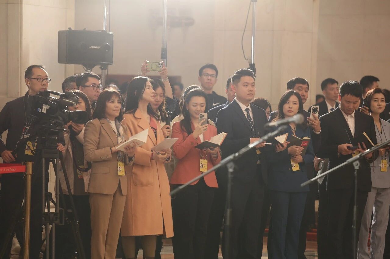 全国政协十四届四次会议第二场“委员通道”集体采访活动在北京人民大会堂举行 本刊记者 郑茂典/摄