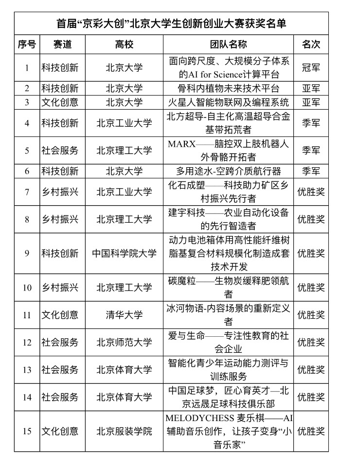 首届 “京彩大创” 北京大学生创新创业大赛圆满落幕, 北京大学项目团队包揽冠亚军