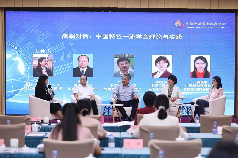 高端对话环节,中国林学会副理事长兼秘书长陈幸良, 中国科学院科技战略咨询研究院研究员杜鹏,中国公路学会 会员服务部主任韩立萍,中国科学院科技战略咨询研究院创 新研究员裴瑞敏围绕“中国特色一流学会理论与实践”进行 了深入探讨,并与台下参会人员进行了交流互动。