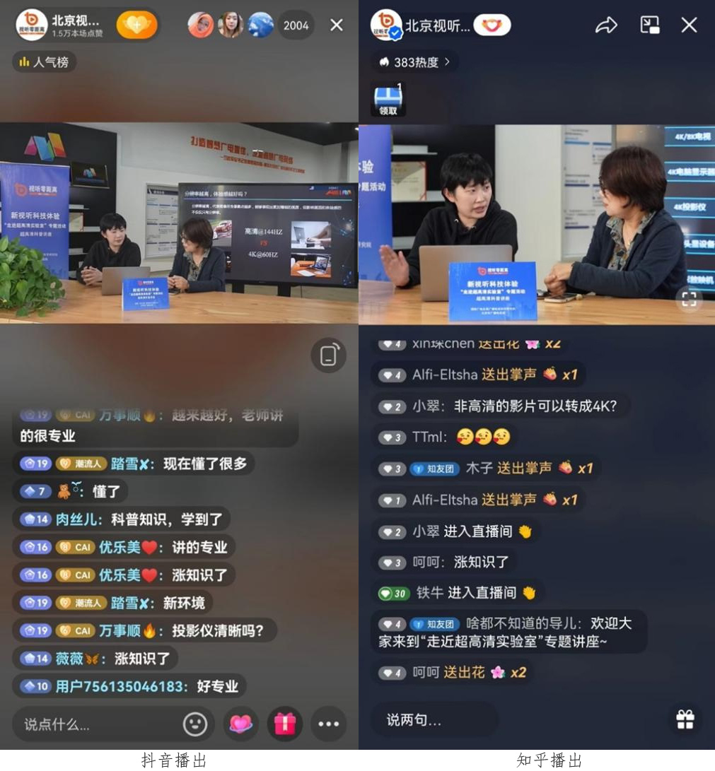 “什么是超高清?”专题讲座在知乎与抖音平台播出时备受关注,播出期间知乎热度达522,抖音点赞量超1.6万。播出后各位关注专题讲座的观众可以通过知乎、抖音平台点播观看“什么是超高清?”专题讲座。