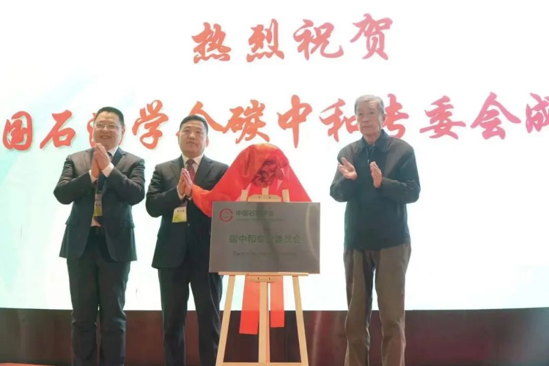 中国工程院院士李大东、中国石油学会专职副理事长兼秘书长徐凤银、中国石化石油化工科学研究院院长李明丰为碳中和专业委员会成立揭牌