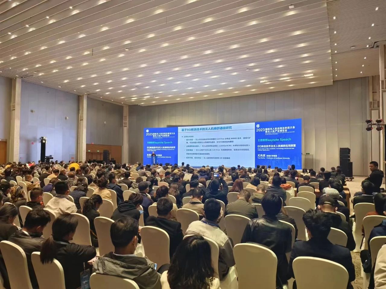 东南大学教授尤肖虎的报告题目为《6G候选技术及无人机蜂群应用探索》,他对未来6G的判断概括为12个字,即“全覆盖、全频谱、全应用、强安全”。