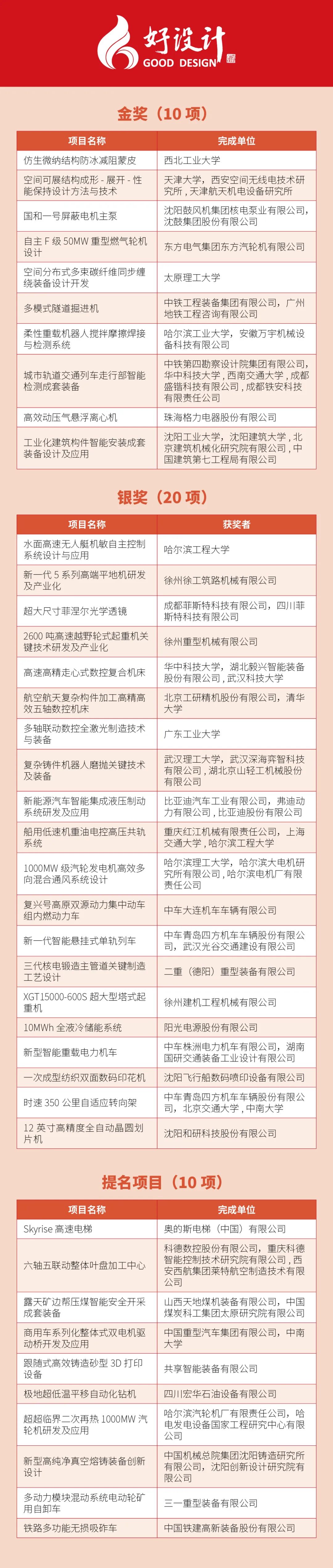 以下是2024第九届好设计获奖及提名项目名单