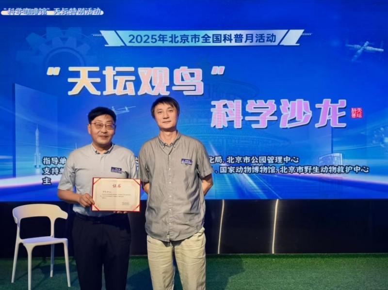 2025年9月13日,由北京市天坛公园管理处主办,在北京市科学技术协会、北京市园林绿化局、北京市公园管理中心指导下,并获得中国科学院物理所“科学咖啡馆”、国家动物博物馆、北京市野生动物救护中心等单位支持的“天坛观鸟”科学沙龙于天坛科普园举办。活动聚焦天坛公园,汇聚生态保护、科研教育、自然教育等领域的专家学者及社会公众,深入探讨城市中心区域生物多样性保护之道,共同提升对北京鸟类生态的认知与保护意识。