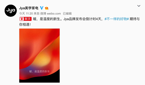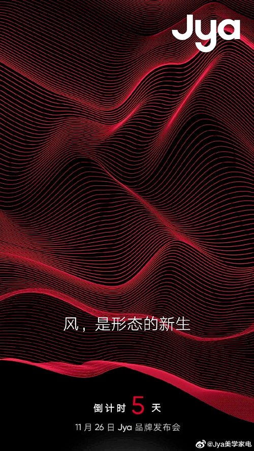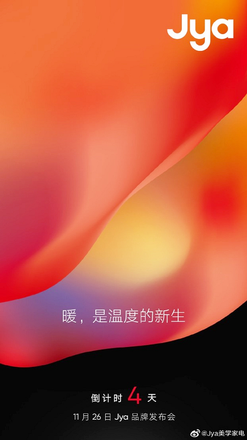 11月22日,Jya官方微博发布第二张倒计时海报,预告将于11月26日召开品牌发布会。