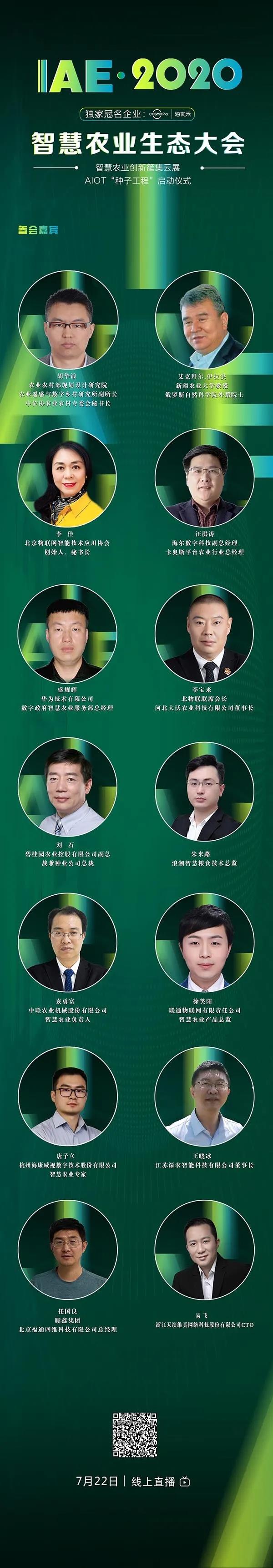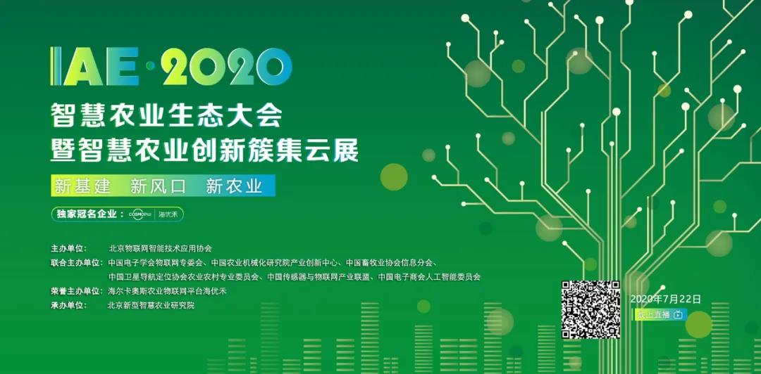 [ 2020年7 月22 日9:00-17:00举行,由海尔卡奥斯农业物联网平台海优禾独家冠名的“新基建 新风口 新农业”IAE.2020 智慧农业生态大会直播活动即将举办。届时,海尔、碧桂园农业、浪潮国际、海康威视、华为、联通、中联重科等行业巨头及河北大沃农业、江苏深农智能、浙江天演维真、北京福通四维等智慧农业科技创新型企业等聚焦行业应用现状与痛点,探讨新基建背景下中国智慧农业发展的未来走向;同时通过线上云展的形式展示智慧农业的优秀技术产品及解决方案。]