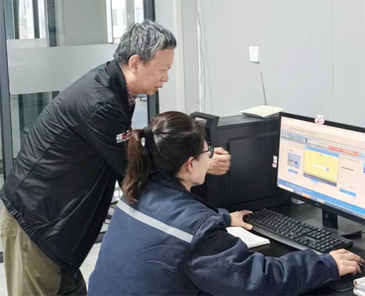 在津东集团公司杂志社创新服务河北中心主任王建楼(左一)现场指导安装使用中国科协专利信息资源系统